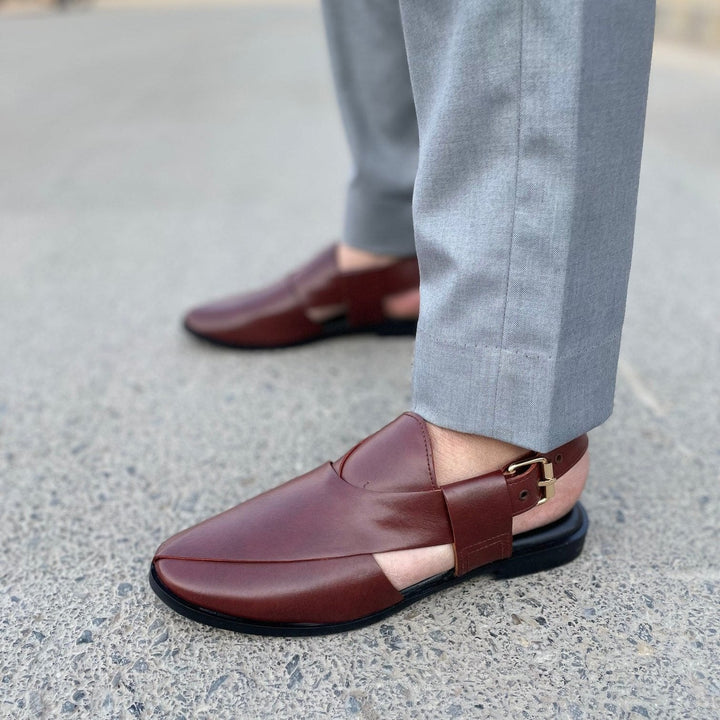 WS Pure Leather Handmade Oxblood Peshawari Sandal-306