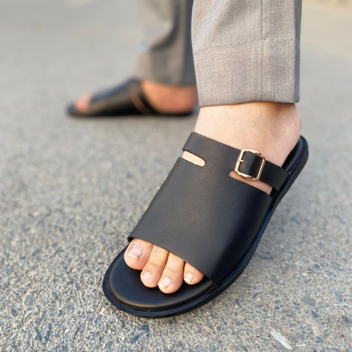 WS Pure Leather Handmade Padasa Chappal WS137 BLK