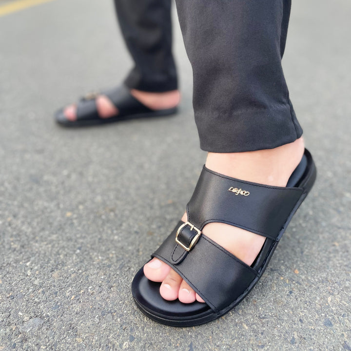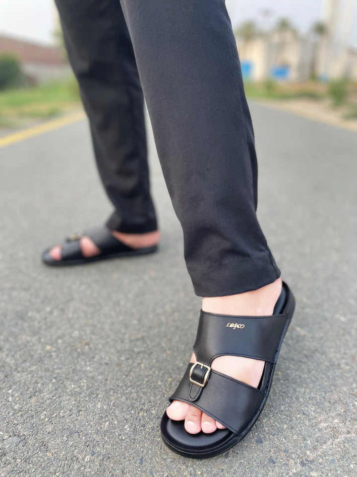 WS Pure leather Handmade MoccaStep Chappal WS-163 BLK